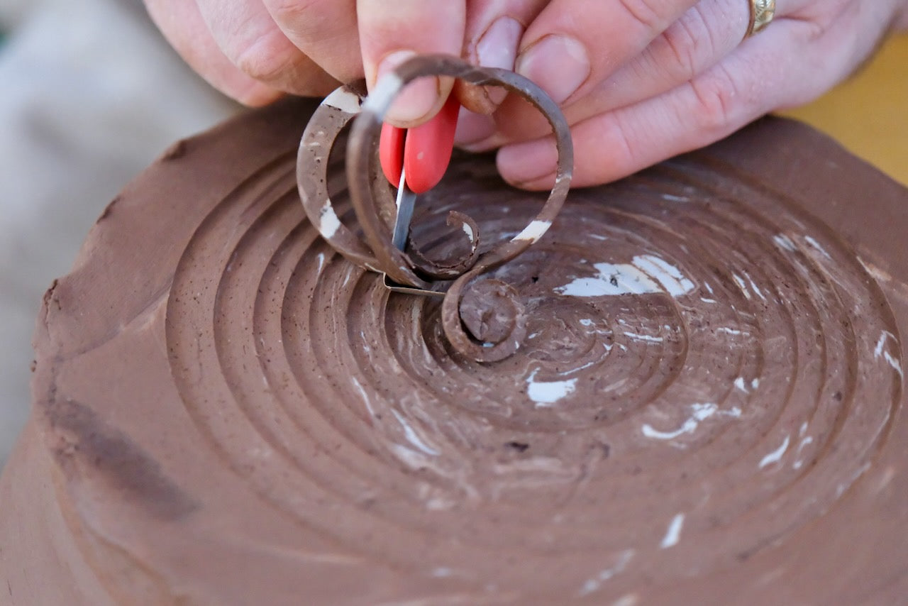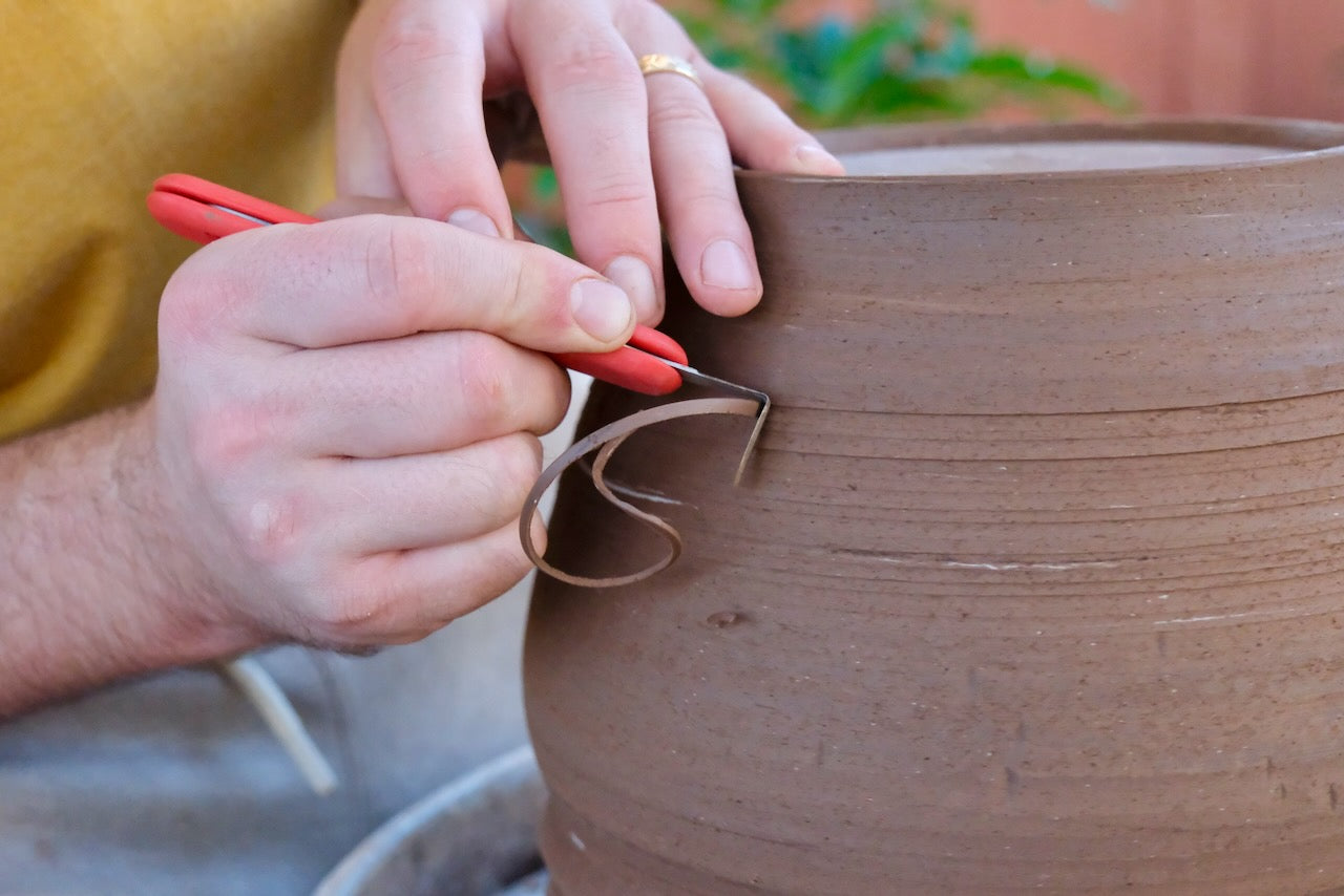 - The Fin blade gives you the versatility you need to create intricate details. Use the corner to remove bulk material from inside the foot ring, or trim through rough patches. The pointed tip will create small and precise lines, while the arced side of the blade can help refine the medium to small curves of your piece. Trim all the way down to the wheel head using the fin pointed down.