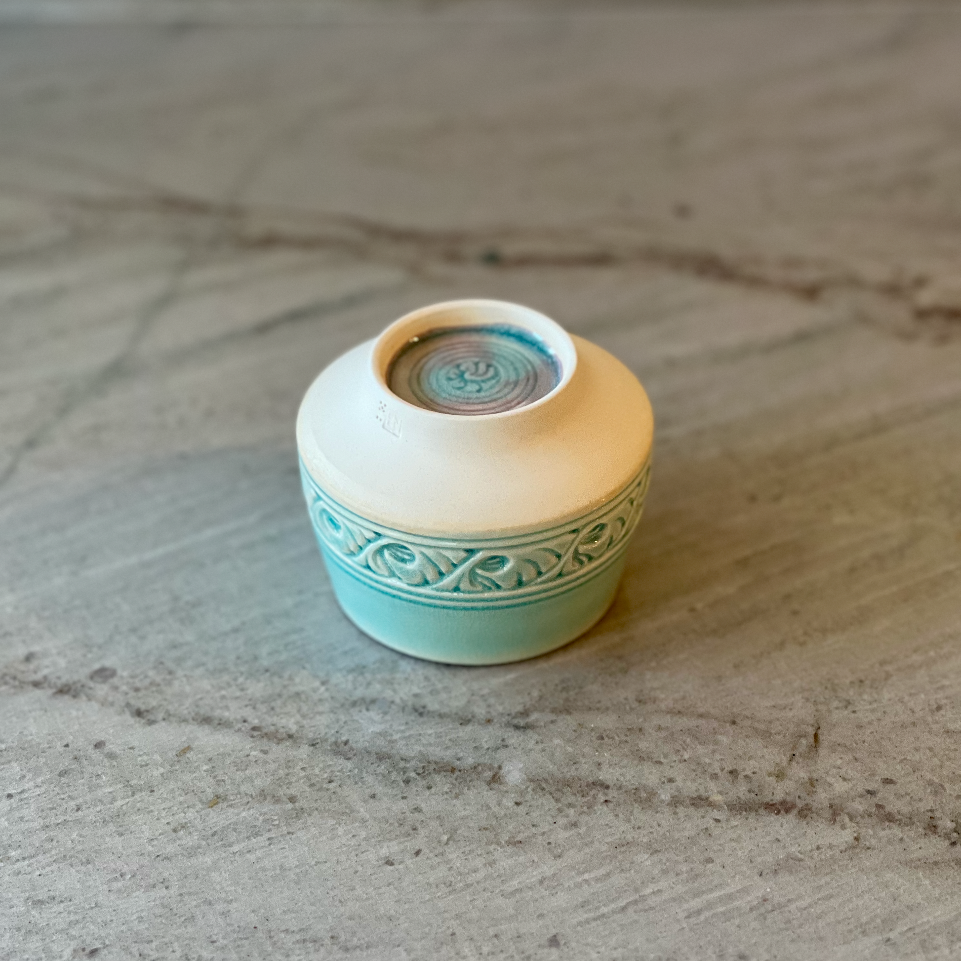 Porcelain Cup with Relief Carving, Translucent Blue Glaze