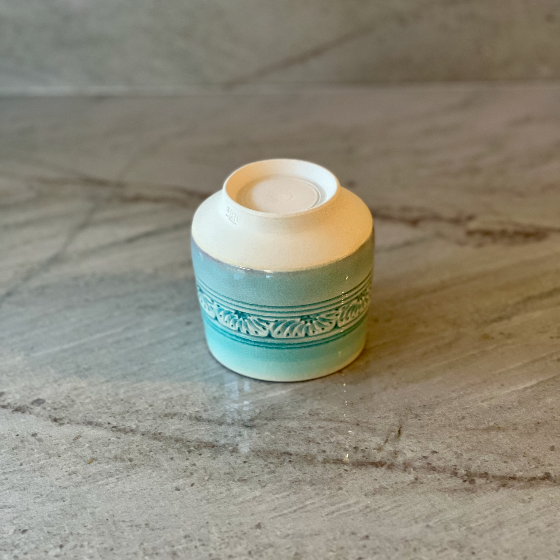 Porcelain Cup with Relief Carving, Translucent Blue Glaze